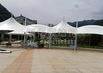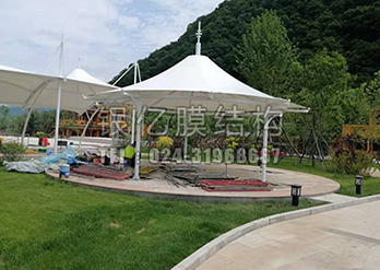 景觀膜結構罩棚使用壽命長,不同的膜材使用壽命從10年到30年不等,施工工期短,由于膜結構頂棚是工廠加工后直接現場安裝,所以在造價以及施工速度方面有著明顯的優(yōu)勢
