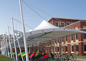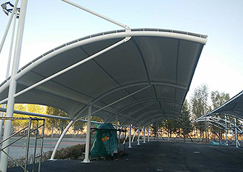 鋼膜結構車棚,就是以鋼結構和膜結構為原料制造而成的車棚,簡稱膜結構車棚,鋼膜結構車棚以膜材料為張拉主體,與支撐構件或拉索共同組成結構體系