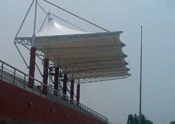 膜結構罩棚的跨度大是特點之一,在跨度大的建筑中需要對建筑的設計及膜材選用非常嚴格,由空氣壓力支撐膜面,或是利用柔性鋼索或剛性骨架將膜面繃緊,從而形成具有一定剛度并能覆蓋大跨度結構體系